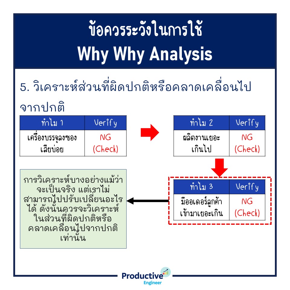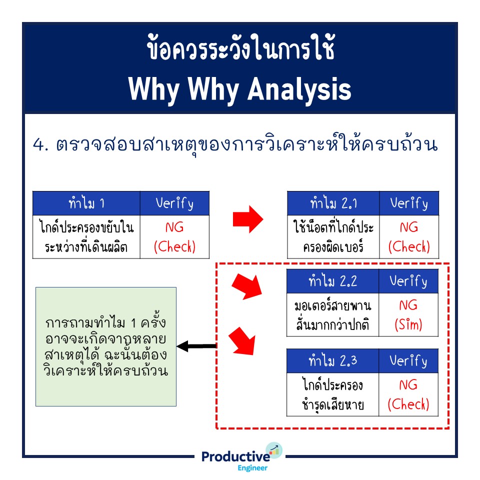 📌ตรวจสอบสาเหตุของการวิเคราะห์ให้ครบถ้วน เนื่องจากการถาม 1 ทำไม อาจจะเกิดจากหลายสาเหตุ