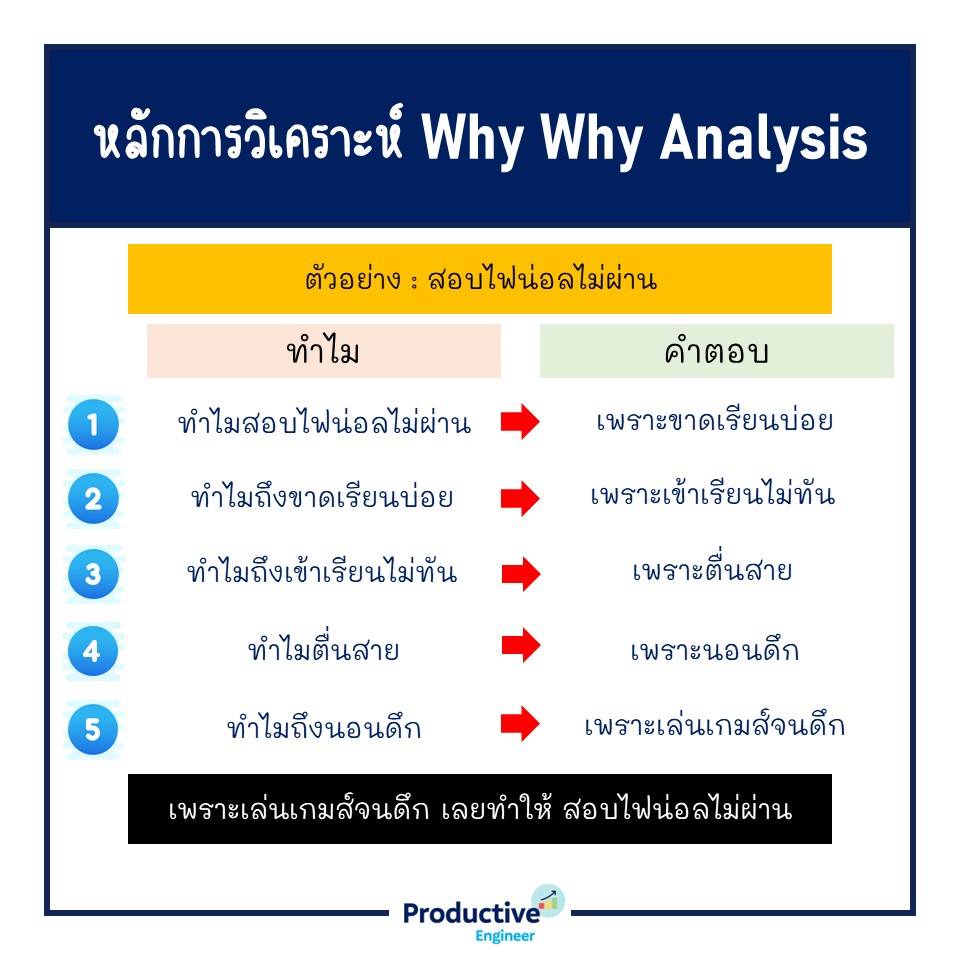 การวิเคราะห์ Why Why Analysis คือหนึ่งในเครื่องมือยอดนิยมในการหาสาเหตุที่แท้จริงของปัญหาที่ต้องแก้ไขเพื่อนำไปสู่การปรับปรุงและป้องกันการเกิดซ้ำต่อไป