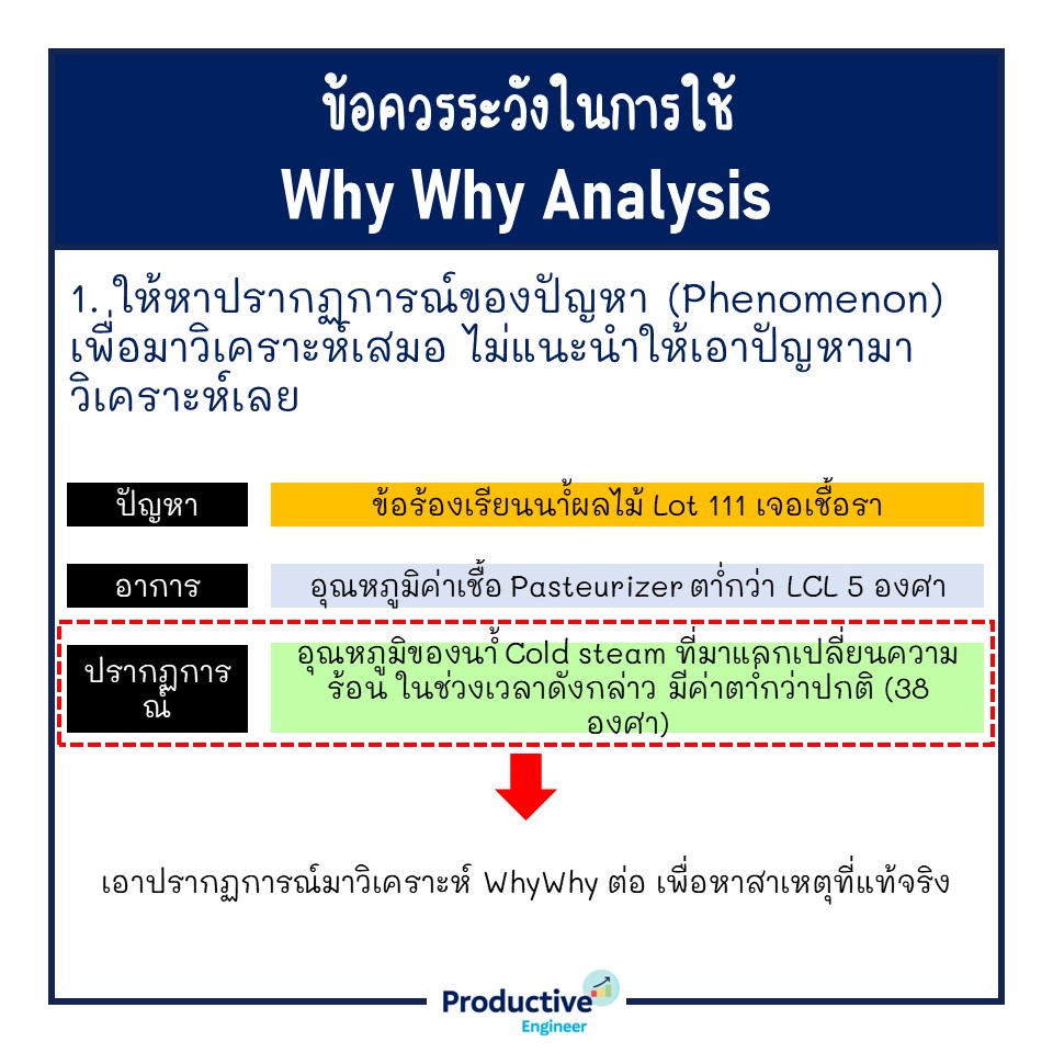 📌ให้หาปรากฏการณ์ของปัญหา (Phenomenon) เพื่อมาวิเคราะห์เสมอ ไม่แนะนำให้เอาปัญหามาวิเคราะห์เลย มิฉะนั้นอาจจะวิเคราะห์หลงป่าได้