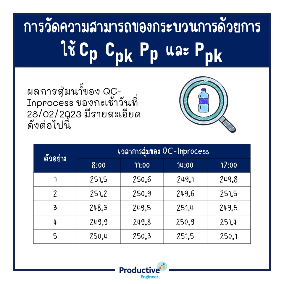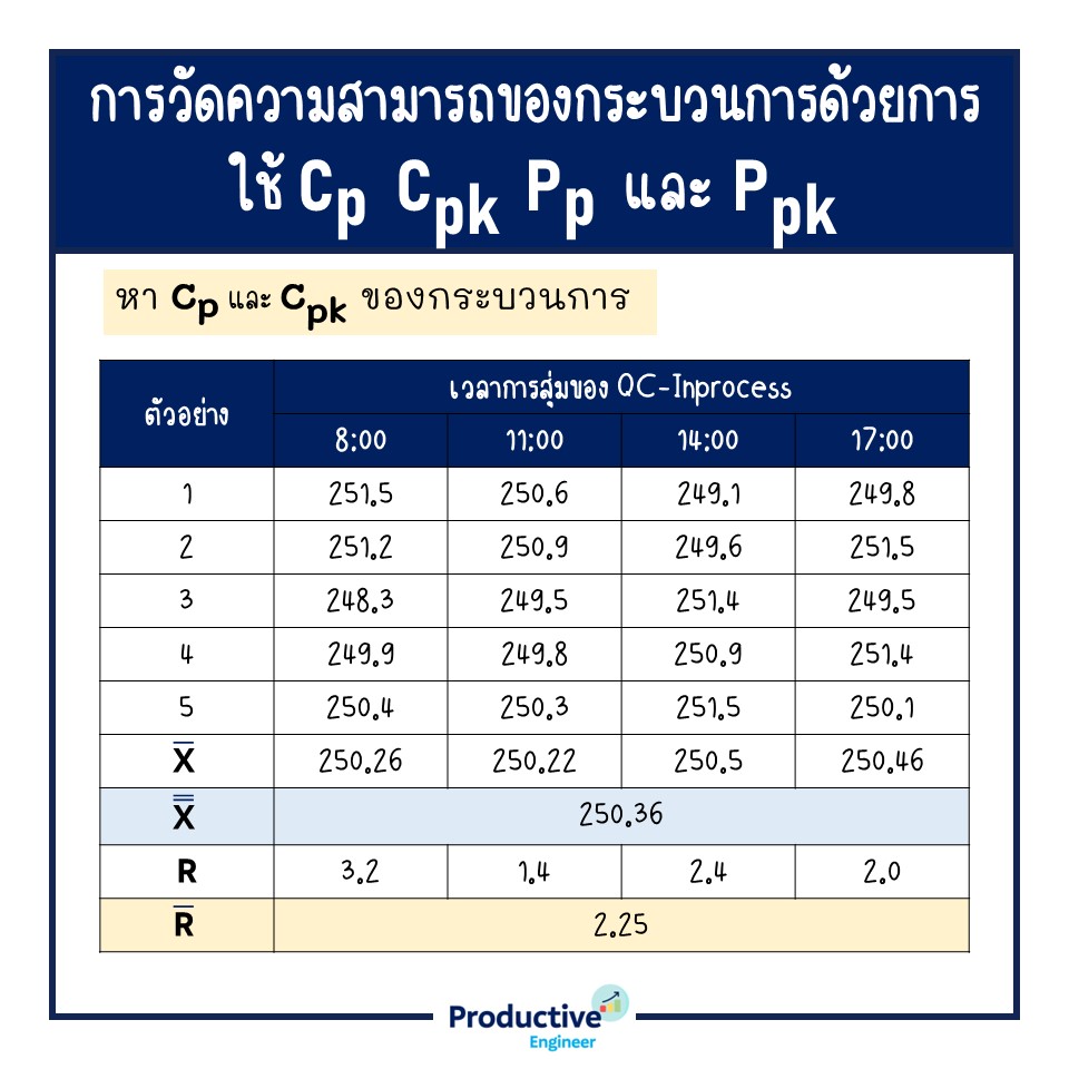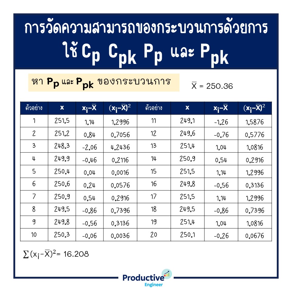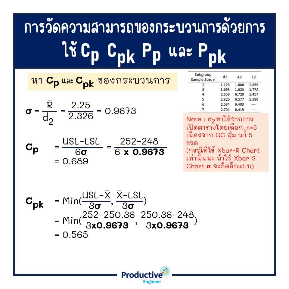 โดยค่าที่จะใช้ในการวัดความสามารถกระบวนการว่ากระบวนการไหนมีประสิทธิภาพไม่มีประสิทธิภาพคือ Cp และ Pp